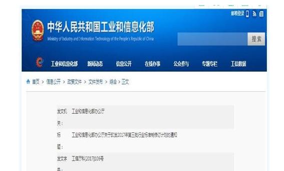 工信部2017年第三批行业标准制修订计划
